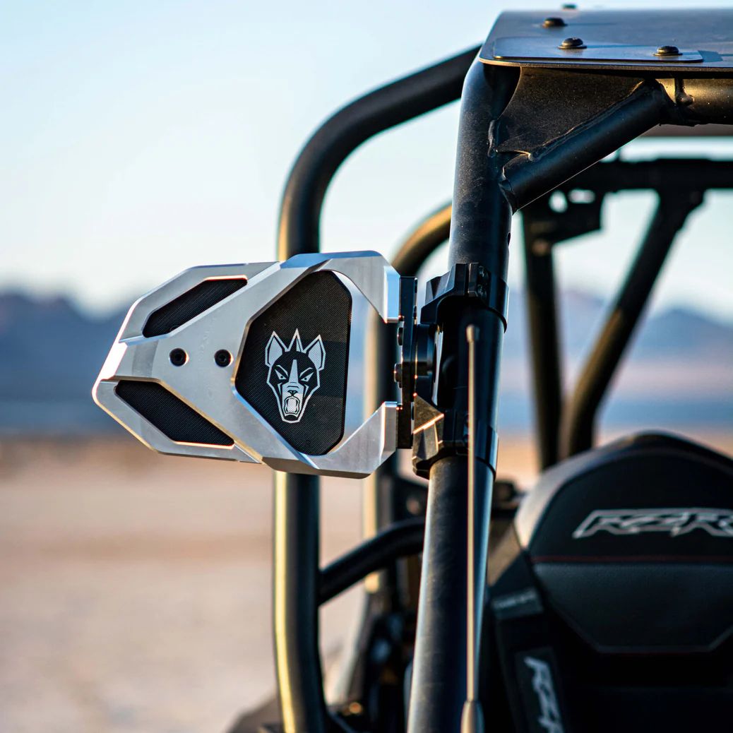 Con la posibilidad de montar luces de cápsula de casi cualquier marca que prefiera y ajustarlas independientemente del espejo. Nuestros espejos de competición Cuero se crearon con soportes de marco con aislamiento de goma para ayudar a reducir la vibración durante la conducción todoterreno. Con un diseño modular mejorado que utiliza nuestro sistema de abrazadera patentado, estos espejos también se adaptan a la mayoría de los parabrisas y redes de ventanas, lo que permite un gran ajuste en su SxS.