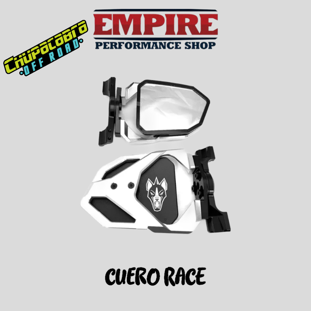 Espejos chupacabra Cuero Race Silver, disponibles con agarradera 1.75, 1.875 y 2.0, selecciona la que mejor se acomode, somos distribuidores autorizados, solo en, Empire Performance Shop! todos los espejos cuentan con base para faro led.